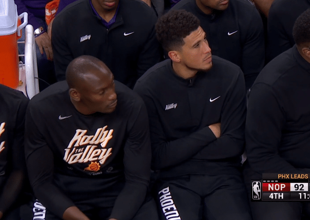 下半场,布克第三节仅仅出手1次,没有得分进账,并且早早下场坐回替补席,当保罗和布克两大核心都不在场时,英格拉姆带队扭转局面,三节打完太阳83-90落后7分。