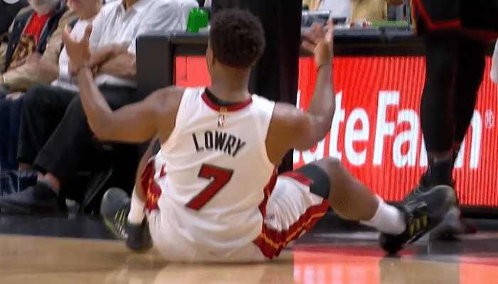 第二节6分多钟,洛瑞和亨特在跑动时发生身体接触,两人手臂缠在一起,洛瑞身体失去平衡,直接摔倒趴在地板上;洛瑞起身后和亨特在底线附近发生争吵,此时巴特勒突破上篮得分。