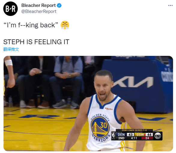 来源:24直播网04-19 15:0724直播网04月19日讯 ,NBA季后赛勇士再次打爆掘金,库里全场替补出战22分钟,17投12中、三分10中5轰下34分3篮板4助攻1盖帽1抢断,在场正负值+32太狠,季后赛3000分里程碑并且带队赢球,库里疯狂庆祝以及爆粗怒吼:我TM回来了;库里打得巴顿摊手跺脚,十分绝望;约基奇累计两T遭驱逐,空砍26分11篮板。