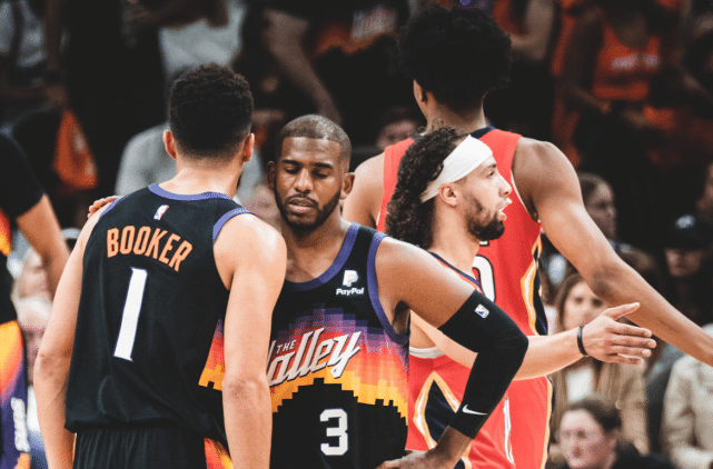 来源:24直播网04-18 15:5624直播网04月18日讯 ,NBA季后赛第二天,常规赛战绩高居全联盟第一的太阳迎来首秀,对阵附加赛连赢两场的鹈鹕。太阳最多时候一度领先23分,虽然鹈鹕下半场疯狂反扑,但保罗第四节接管比赛,最终太阳拿到季后赛开门红。
