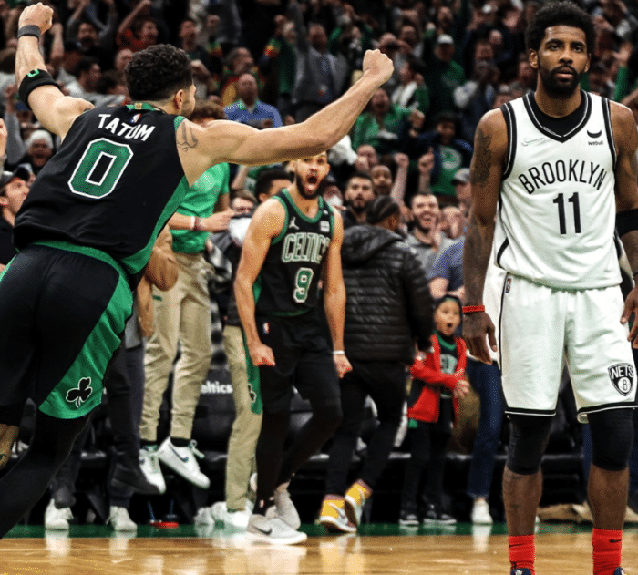 比赛期间,第三节欧文投进大号两分后,冲着绿军球迷竖中指,有球迷怒骂欧文,后者背对着球迷竖了两个中指;末节欧文连续得分,带领篮网15-2反超比分,第四节7分46秒比赛暂停时,镜头拍到欧文摊手并且做出哭脸状;欧文回应绿军球迷的行为,恐怕会被联盟追加罚款,竖中指的行为至少被罚1.5万美元。