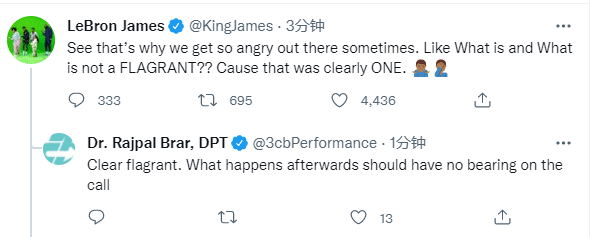 对于裁判的吹罚,湖人当家球星詹姆斯不满仅仅吹罚普通犯规,发推写道:这就是我们为什么有时候在场上如此生气的原因。这难道不是一个恶犯?明显是个一级恶犯啊。