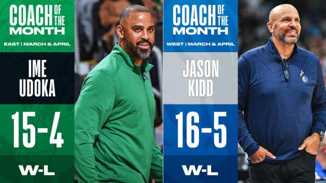 乌度卡率领凯尔特人在3-4月打出了15胜4负的战绩,这也是联盟这一区间最好的战绩。最终凯尔特人51胜31负,这是绿军队史上第三次由一名菜鸟主帅带队打出至少50胜的成绩。绿军晒图祝贺乌度卡当选月最佳教练。