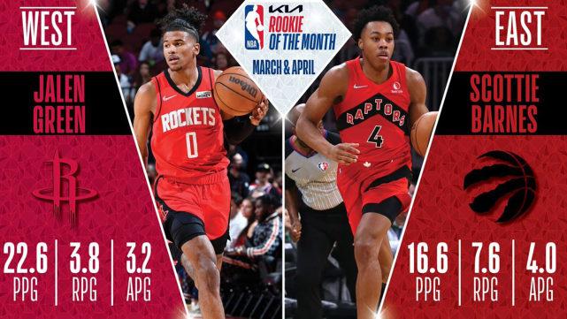 巴恩斯本赛季第二次获此殊荣,在3-4月的比赛中,巴恩斯场均16.6分7.6篮板4助攻,3月对湖人一战,他打出了赛季代表作:31分17篮板,均创赛季新高。巴恩斯也成为了NBA历史上第一位在与湖人比赛中拿下至少30分15板的新秀。