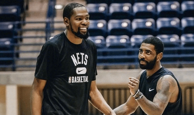 欧文:“我不知道有多少7英尺高的球员能像杜兰特这样持球,而且还能成为进攻的组织者。”紧接着欧文深情地对着杜兰特说道:“我爱你。”