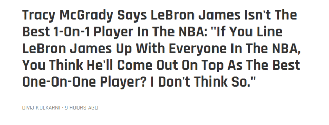 麦迪质疑詹皇单挑实力!爵士名宿回应:杜兰特是最强1v1球员