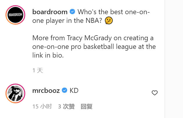 节目平台也在炒热相应的话题,提出了一个问题:谁是NBA最强的1v1球员 ?不少球迷给出了各自的答案,很多人选择了杜兰特。布泽尔也在评论区里凑热闹,力挺杜兰特是单挑最强球员。诚然,杜兰特的进攻能力全面,有身高有速度,要防守他真的太难了!
