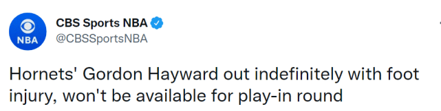 海沃德在2月8日扭伤脚踝,并连续缺席22场比赛。这位昔日的全明星在4月3日对费城的比赛中复出,打了17分钟,但随后他又再次缺席,已经连续四场休战。