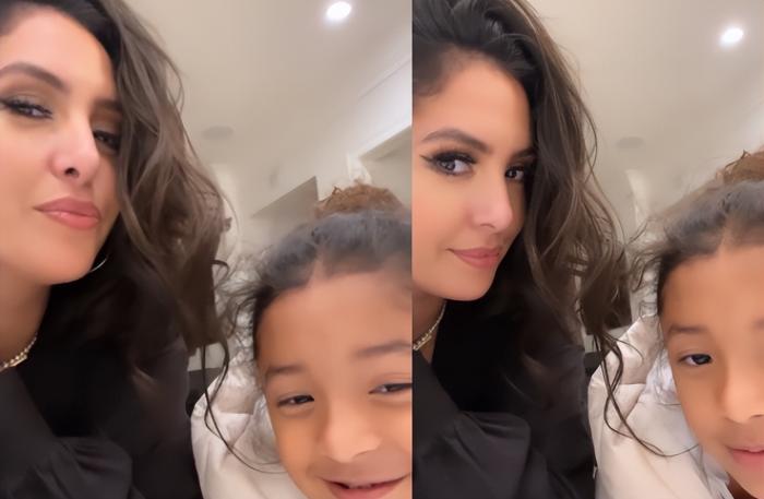 瓦妮莎侧颜迷人,与女儿同框拍视频,眼中透着俏皮40岁风韵优雅