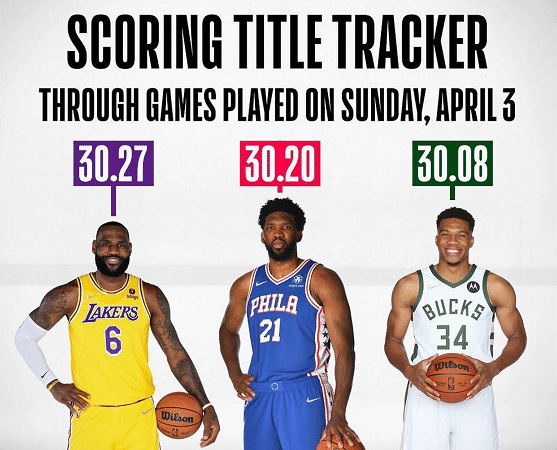 得分王层面,目前竞争的是字母哥、恩比德和詹姆斯,目前詹姆斯排名第一,他总分1695分,场均30.27分。恩比德经历了昨天的44分之后,已经反超字母哥,他场均30.20分,仅仅落后詹姆斯0.07分,差距已经很小。字母哥场均30.08分,依旧有希望冲击得分王,但需要努力了。这三人场均得分都是30+,竞争相当激烈。