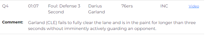 第四节1分07秒,骑士后卫加兰在没有防守对手的情况下站在禁区超过三秒,应该吹罚加兰防守三秒违例,这是一次漏判。
