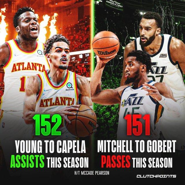随后clutchpoints晒出了对比数据,赛季至今,米切尔只给戈贝尔传了151次球,而相比之下,特雷-杨为卡佩拉送出了152次助攻。请注意,米切尔的数据只是传球,而特雷-杨的数据是助攻。