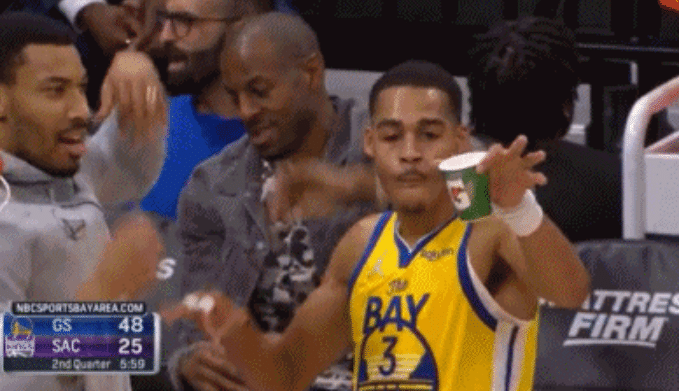 比赛期间,普尔在庆祝队友命中三分球的时候,端着茶扭动身体,普尔端茶庆祝的画面也喜感十足。