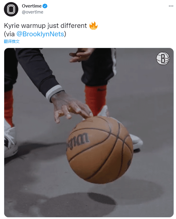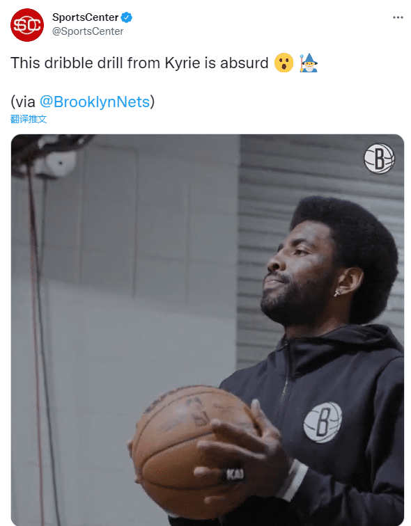 美媒疯狂转发欧文手指运球的视频,SportsCenter发推写道:欧文热身运球太荒谬了;Overtime表示欧文热身与众不同;ClutchPoints直呼太不可思议。