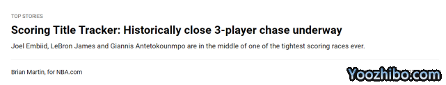 好球直播吧04月02日讯 ,史上最激烈的一次得分王之争,发生在1977-78赛季,最终,乔治-格文和大卫-汤普森之间只差0.07分。如果詹姆斯最终成为得分王,他将超过乔丹,成为历史上最老的得分王,而如果字母哥或者恩比德成为得分王,他们将成为NBA历史上第一位出生在美国外的得分王。