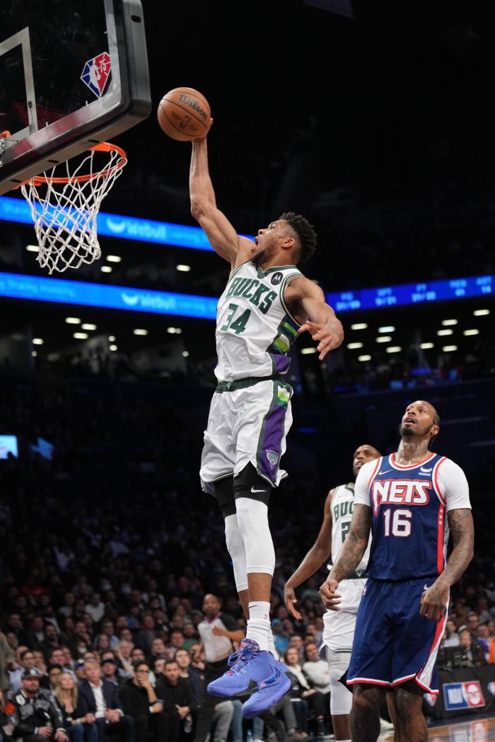 第二节,字母哥开启进攻模式,一招碾压式突破暴扣太无解,禁区保护篮板并且补扣得分,篮网全队真没人能防住他,单节6投5中高效轰下16分,疯狂暴扣肆虐篮筐,这样的希腊神兽太不可阻挡。