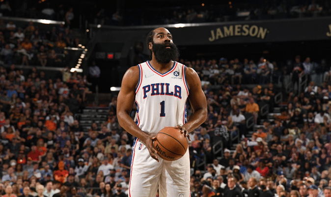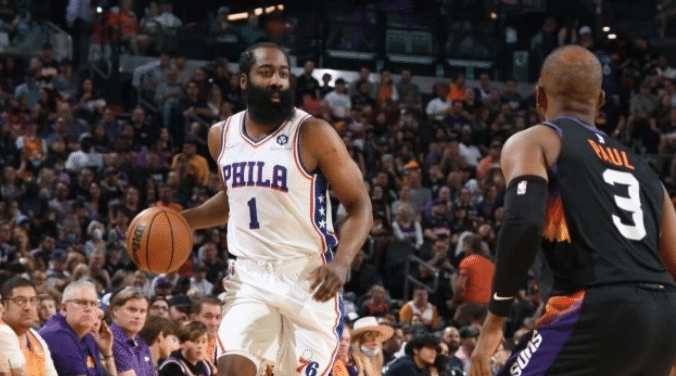 第四节,哈登出场,他突破之后抛投造成沙梅特犯规,两罚全中。哈登助攻马克西命中三分球,还助攻恩比德上篮打进,缩小分差。76人打出一波10-0的攻击波。最后2分钟,哈登击地被布里奇斯识破断下,转换进攻被克劳德命中三分球,分差也来到了12分,太阳打出一波流,76人遗憾输球。