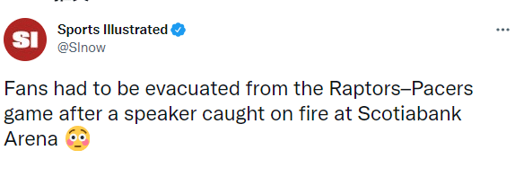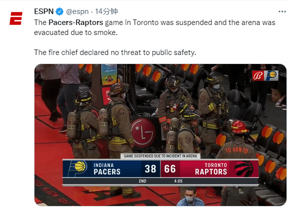 意外!猛龙主场失火导致暂停比赛,球员返回更衣室消防员疏散球迷离场