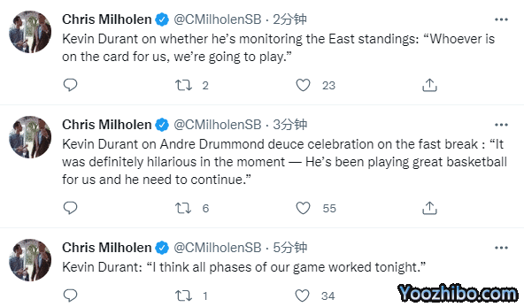 谈到德拉蒙德反击中做出比V手势,杜兰特表示:那一刻确实太搞笑,他打得很好,他需要继续保持这样的状态。