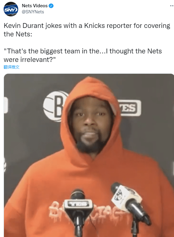 谈到是否关注篮网排名,杜兰特表示:无论谁和我们对阵,我们都会上场的。