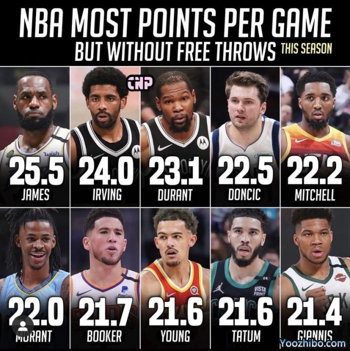 据美媒统计,本赛季非罚球得分TOP10具体排名——