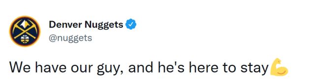 掘金目前战绩是43胜30负,排名西部第六,而这是在约基奇穆雷和小波特没有合体打过一场比赛的前提下实现的。ESPN数据显示,丹佛掘金在NBA的投篮命中率排名第三,有效命中率排名第二,助攻率排名第二。