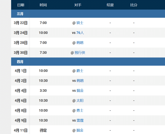 可以看到,湖人剩余11个对手分别是骑士、费城、鹈鹕、独行侠爵士、鹈鹕、掘金太阳勇士雷霆以及掘金,这其中只有雷霆的胜率比湖人低,并且有多达8场比赛对手是季后赛球队!以湖人目前的糟糕状态来看,他们打谁都没有获胜的把握。