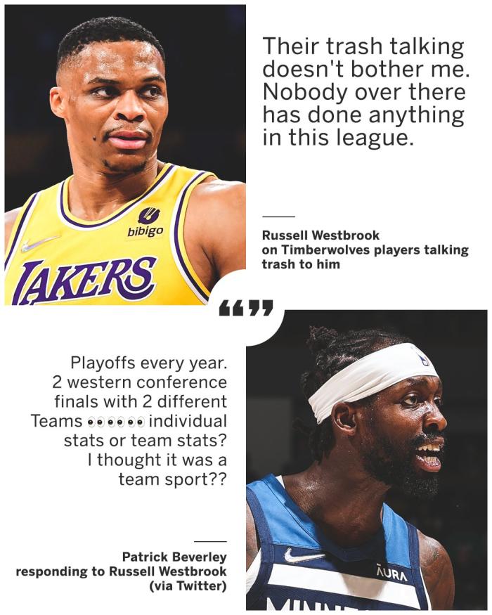 湖人惨败赛后,威少表示自己不在乎森林狼队的垃圾话,他们还没有拿到任何成就;贝弗利第一时间回应:我每年都进季后赛,还两次杀进西部决赛。