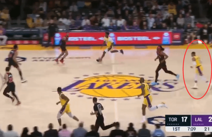 此时湖人球员的心态也已经完全崩盘。詹姆斯在防守中,被对手直接一步过,老詹也没有下一步的防守动作。而威少的防守表现则更令人沮丧。在一次防守中,威少在对手进攻完成之后,才慢吞吞出现在画面中。而当湖人推起反击,威少还是在溜达,根本不想打了。