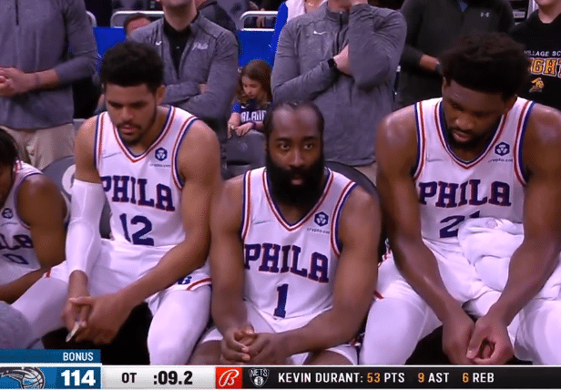 76人和魔术两队最后3分05秒都不得分,从而打进加时赛。