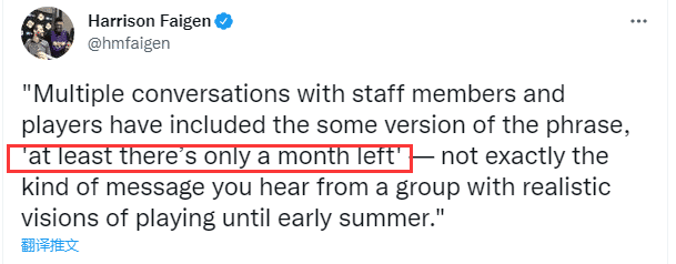 目前湖人队内氛围并不好,据湖人记者Harrison Faigen报道,由于球队战绩与预期相差太大,目前队内的气氛并不好,现在湖人球员们不得不说服自己这个赛季还有希望,该记者还表示,他与多位湖人工作人员和球员对话后得到一个类似的回应:这个赛季也就只剩一个月了。