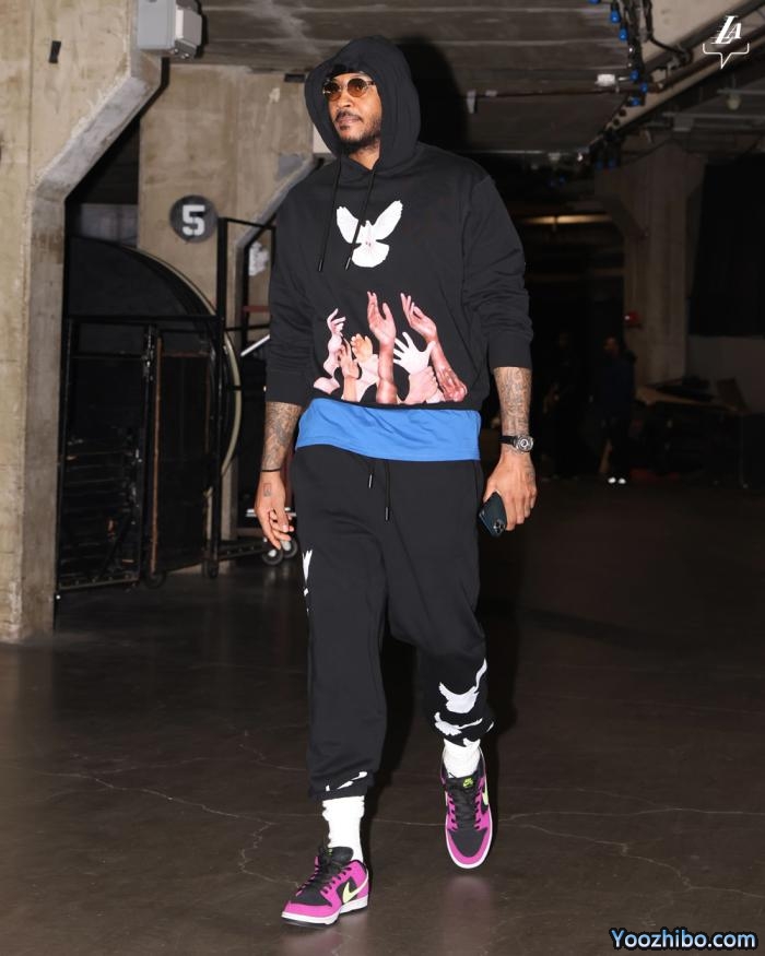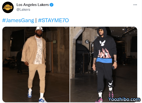 湖人主场迎战奇才,湖人官方晒出詹姆斯和安东尼的入场照,提前3小时抵达球馆,詹姆斯戴着白色棒球帽、身穿扎染T恤和纯色外套、长裤,走进球馆时表情严肃、眼神坚定略带杀气;37岁安东尼则是连帽卫衣,戴着墨镜尽显大佬范。