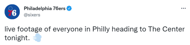 76人方面也晒出了一张哈登奔跑的照片,并配文写道:“这就是费城每个人今天前往球队主场的样子。”