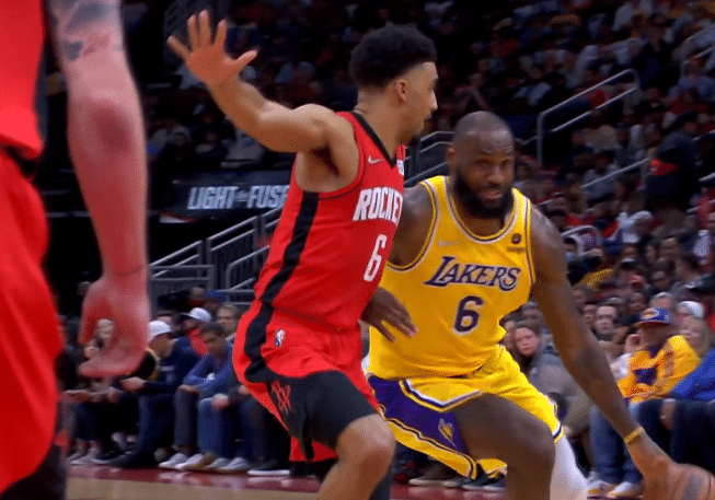加时赛,詹姆斯禁区上篮被帽,火箭榜眼连得5分打停湖人;威少致命失误,格林再次得分,火箭两记三分,威少上空篮不中,火箭10-0打爆湖人,詹姆斯终于投进三分,无奈最终湖人加时输掉比赛。