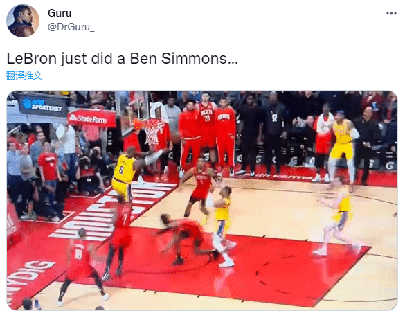 湖人和火箭第四节最后13秒,两队打成120平,詹姆斯外线持球突破,杀到禁区后把球传给外线的安东尼,甜瓜三分打铁错失绝杀;詹姆斯又在生死时刻选择传球,从当时的情况来看,詹姆斯本可以上反篮,即使不进也无可厚非,可詹姆斯又选择把球传出去。