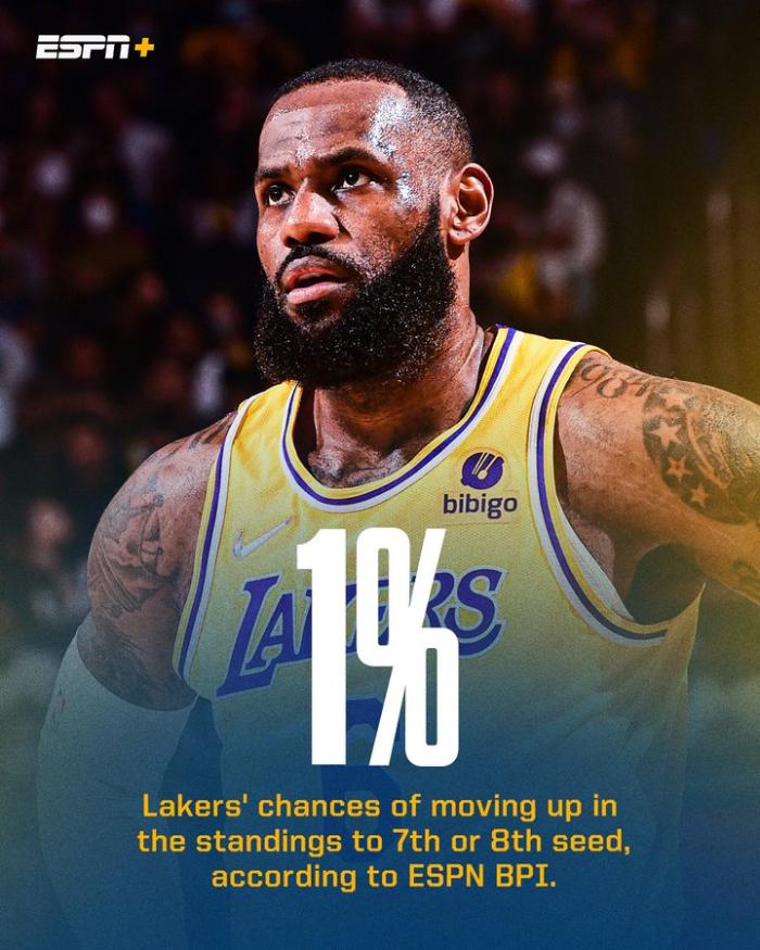 你的位置: 24直播网 篮球直播 NBA 湖人进季后赛概率仅7%!詹皇能力挽狂澜?沃帅两大目标恐成泡影