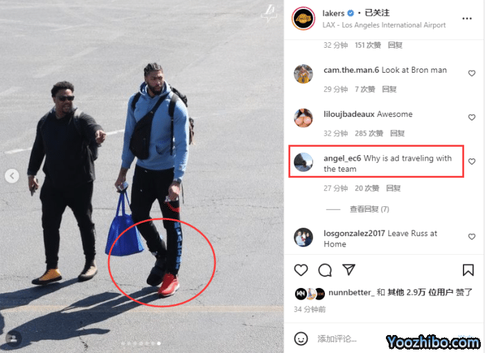 湖人官方晒出众球员登机飞往圣安东尼奥,詹姆斯、威少和浓眉三巨头带队出征,其中浓眉穿着保护靴随队出征,球迷质问湖人:为什么浓眉随队前往客场?