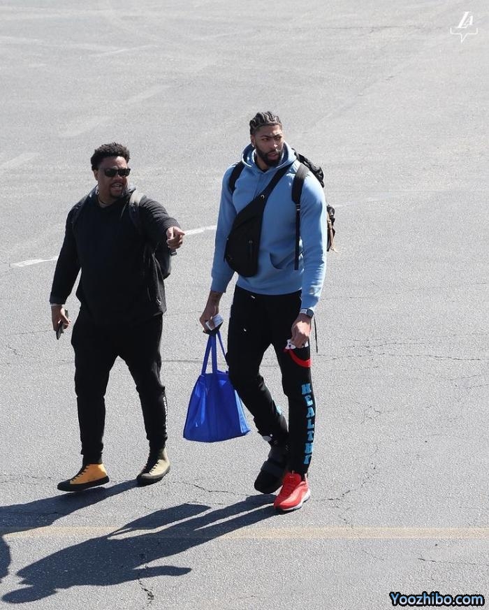 浓眉身穿运动裤和灰色连帽卫衣,背着双肩包、斜挎包以及提着布包,右脚穿着护具,裤子上印着“Healthy健康”的字样;浓眉是在今年2月17日对阵爵士时受伤的,遭遇中足扭伤,到今天为止,浓眉已经养伤18天,仍未摆脱保护靴,带伤随队出征。