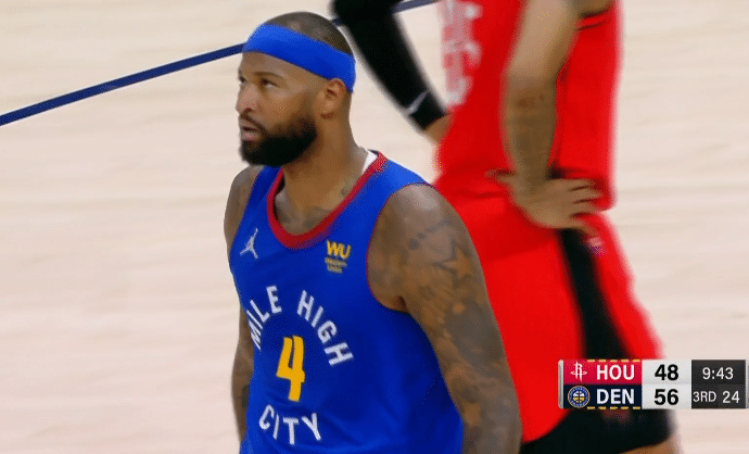 下半场,考辛斯第三节上场便得分,不过之后因不必要拉拽波特而吃到犯规,戈登三分不算;随后考辛斯轰进三分,禁区造犯规两罚一中,第三节9分38秒,考辛斯因4犯提前下场,犯规太多了;第三节后半场,考辛斯重新回来,外线又进三分,三节拿到25分。