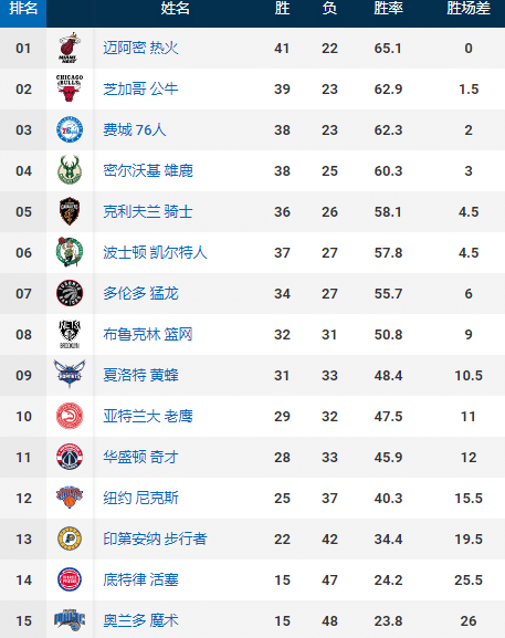 来源:24直播网03-03 22:5524直播网3月03日讯 的比赛,黄蜂119-98骑士,步行者122-114魔术,尼克斯108-123费城76人,热火119-120雄鹿,国王95-125鹈鹕,爵士132-127火箭,雷霆119-107掘金,开拓者90-120太阳。经历8场比赛的大战,NBA战绩榜较昨日没有出现变动,显然赛程进入冲刺阶段,联盟各支球队都在努力稳住自己的排名。首先,看一下东部战绩榜的战况!