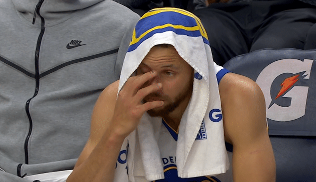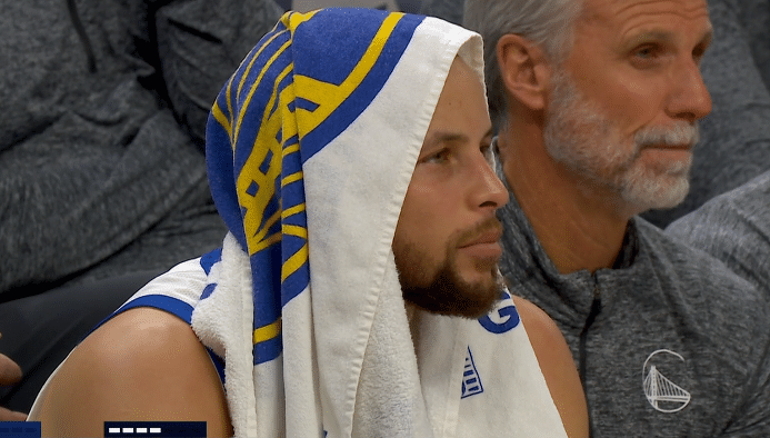 库里提前6分钟投降,空砍34分!末节崩盘又溃败一脸沮丧太郁闷