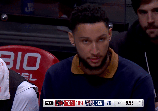 第三节,巴恩斯坐在场边淡定思索,末节在场上送出残暴大帽。