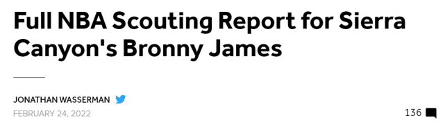 选秀前景方面,美媒预测布朗尼在首轮中后段被选中。抛开詹姆斯的额外吸引力,布朗尼自身也有一定的潜力可以挖掘。