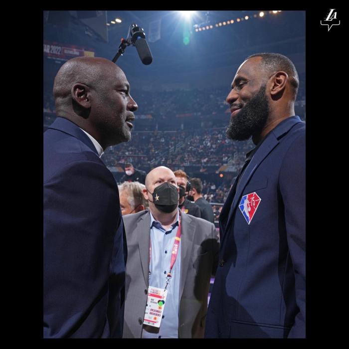 湖人官方也回顾克利夫兰全明星赛,晒出詹姆斯和乔丹寒暄、詹姆斯拥抱安东尼、詹姆斯绝杀以及科比出现在大屏幕的画面,配文写道:值得铭记的一晚。