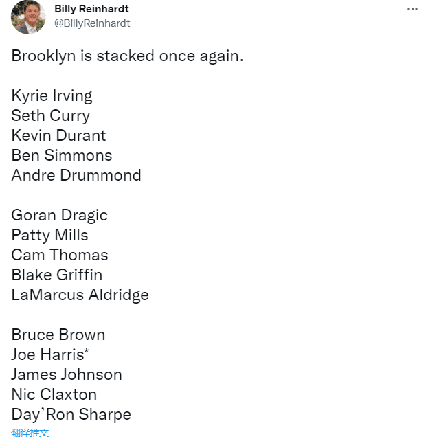 来源:24直播网02-22 11:3724直播网02月22日讯 ,篮网记者晒出篮网队全新的15人大名单——杜兰特、欧文、西蒙斯、赛斯-库里、德拉蒙德、德拉季奇、米尔斯、托马斯、格里芬、阿德、小布朗、乔-哈里斯、詹姆斯-约翰逊、克拉克斯顿和夏普;目前篮网31胜28负排名东部第八。