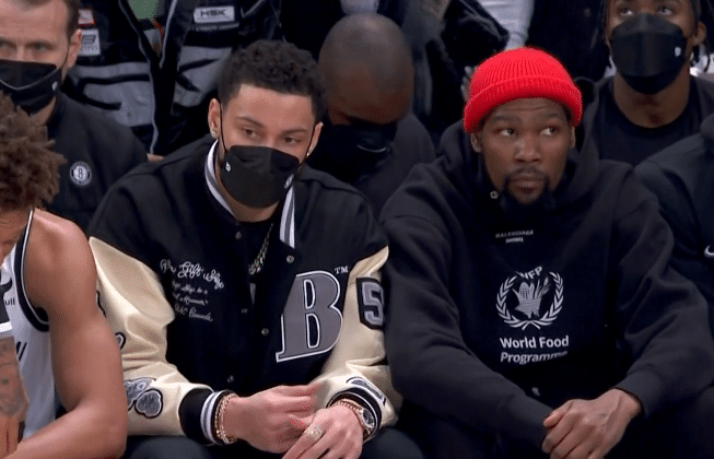 上半场,杜兰特和西蒙斯紧挨坐在替补席,由于篮网落后被压制,他们一脸严肃和不开心;下半场,场上局势风云突变,篮网疯狂反扑,杜兰特兴奋地早已坐不住,站在场边为队友加油,当托马斯投进不讲理制胜三分时,杜兰特为他激情庆祝。