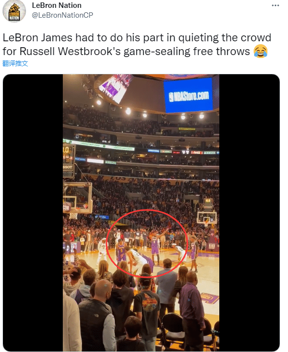 浓眉伤停,詹姆斯和威少带队拿下胜利,湖人双巨第四节都表现出众,生死时刻,威少顶住压力,两罚全中杀死比赛,值得一提的是,威少执行罚球时,詹姆斯伸手示意球迷安静下来,别影响威少罚球,如此举动尽显詹姆斯球队领袖的样子。