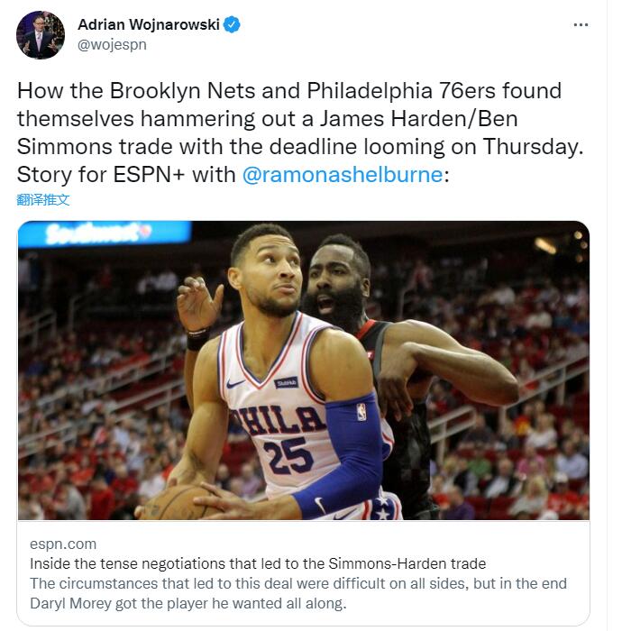 来源:24直播网02-12 18:0524直播网02月12日讯 ,来自美国权威体育媒体ESPN两位名记Woj和Shelburne的联合报道,哈登在离开篮网加盟费城的过程中,将风险对冲。一方面向蔡崇信和马克斯表态想留队,但另一方面却向球员和经纪人询问加盟费城的策略。说得难听一些,哈登的做法非常狡猾,可以说两面三刀。