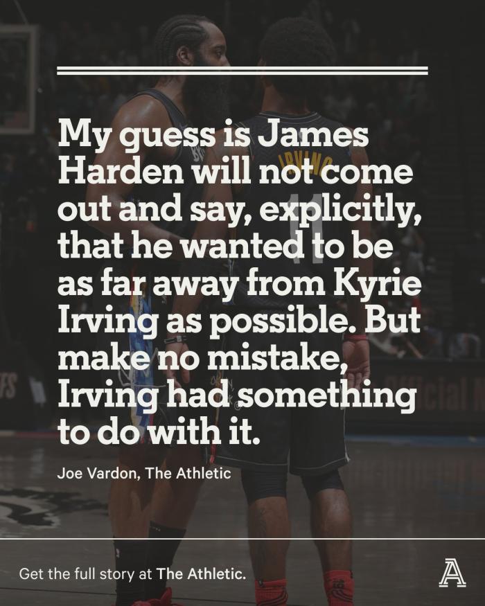 一位消息人士说:他们之间肯定有一种奇怪的感觉,你可以看出哈登很生气,而欧文没有察觉到哈登。