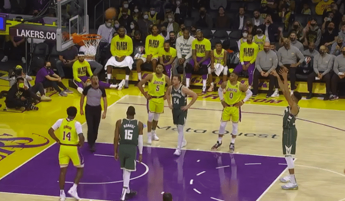 今天的比赛湖人这边安东尼因腿筋拉伤缺阵,何时能够复出还是个未知数,霍华德也因为背部伤势缺阵,本场比赛湖人对首发阵容进行了调整,阿里扎代替了斯坦利-约翰逊首发,湖人首发:威少、蒙克、詹姆斯、阿里扎、浓眉,雄鹿首发:霍勒迪、阿伦、米德尔顿、字母哥、波蒂斯。